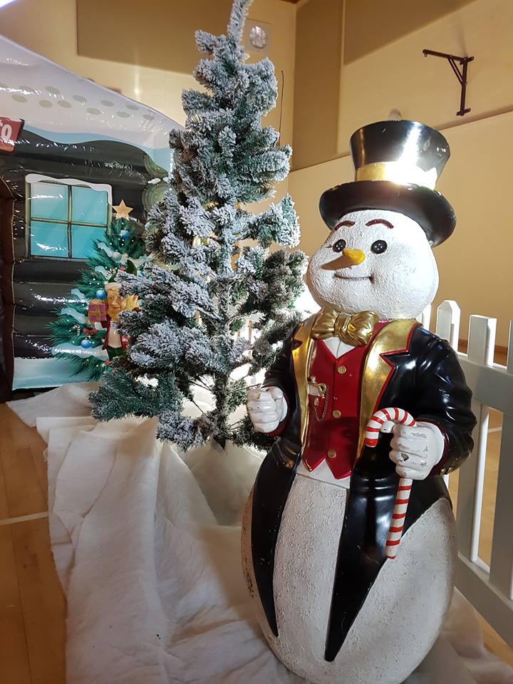 This Christmas Grotto package consists of Santas Christmas grotto which has fantastic artwork inside and outside. Santa's grotto is a log cabin effect with a snowy roof and inside has a cosy fireplace scene. Inside the grotto there is a rocking chair for Santa to sit in and an artificial Christmas tree with fairy lights.