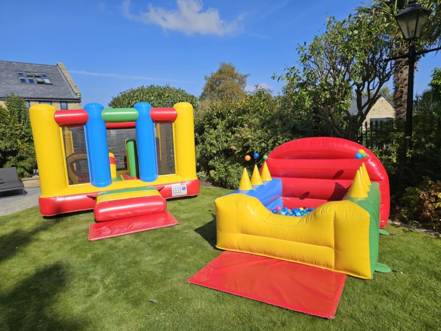 The bouncy castle and ball pool are great fun for children up to 7 / 8 years old and the slide is suitable for children up to 12 years.