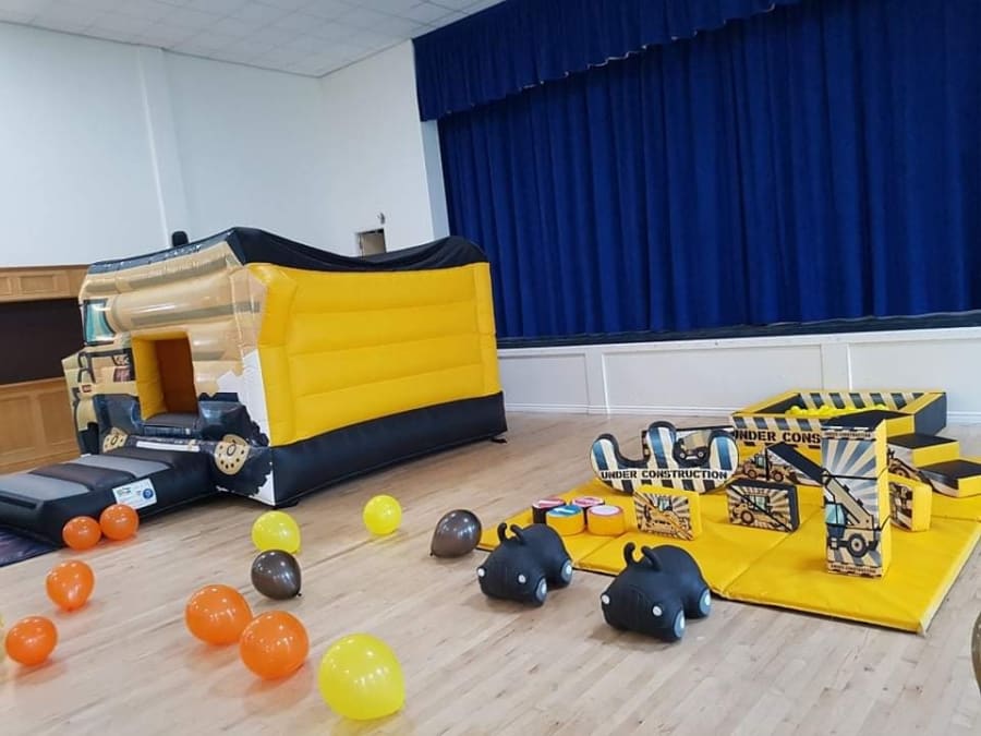 Here is our fantastic Construction themed bouncy castle and soft play package for hire throughout the North East.
