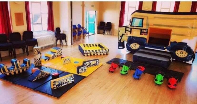 Please note: This bouncy castle and soft play package is for indoor use only. This package includes 4 hoppers, Didi Cars in the photo are not included but can be added for just £30 extra for 6 cars.