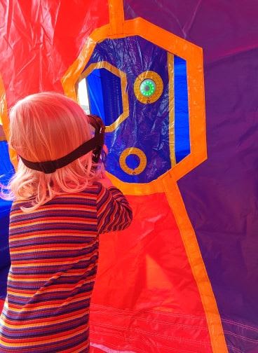 Interactive Nerf Battle Arena available to hire from Party Time! This inflatable arena is extremely popular and comes with all the fun and adrenaline of a Nerf battle but with the extra of using our Interactive Play System to make it even more incredible!