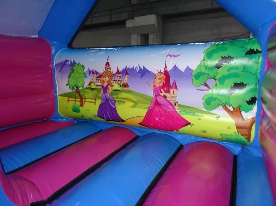 This princess bouncy castle has lovely artwork inside the bouncy castle too and the slide comes out of the 3D princess carriage at the front of the bouncy castle.