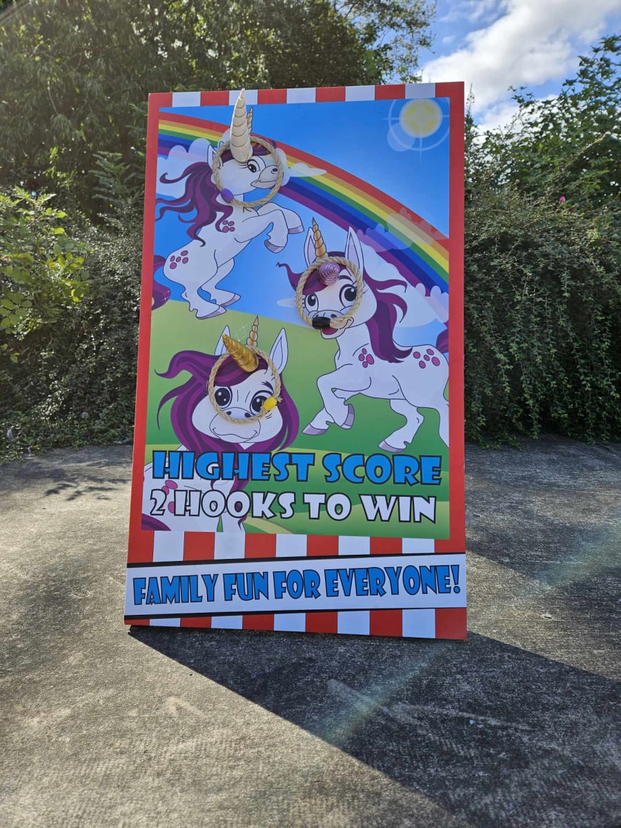 Looking for a magical addition to your unicorn-themed birthday party or fun day? Look no further than our Unicorn Hoopla game! This side stall game is guaranteed to bring hours of fun and excitement to your event.