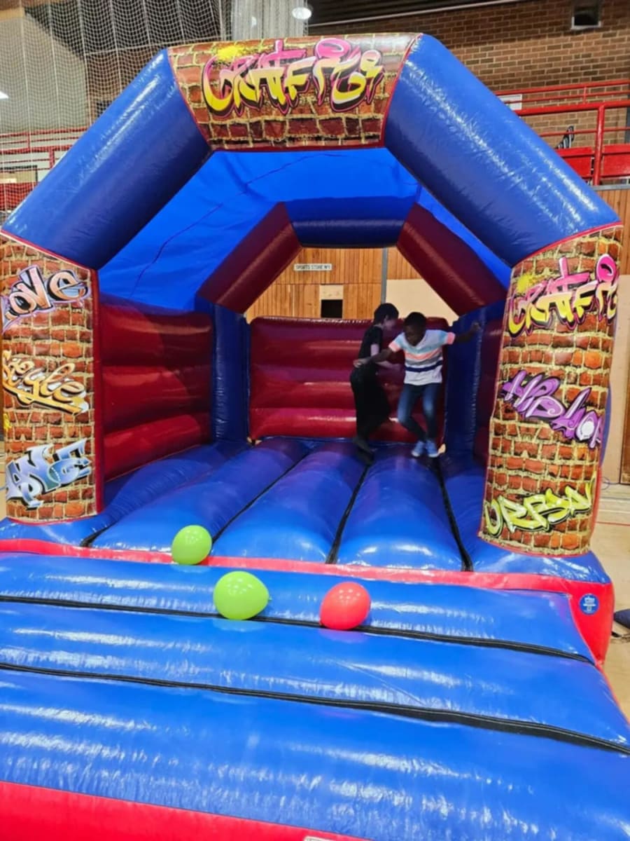 Our Graffiti bouncy castle is perfect for children up to 11 years and is available to hire throughout County Durham and surrounding areas including Darlington, Newton Aycliffe etc.