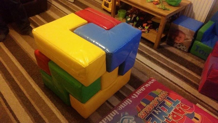 The soma cube measures 0.6m x 0.6m x 0.6m and can be built in many different combinations.
