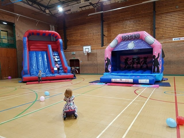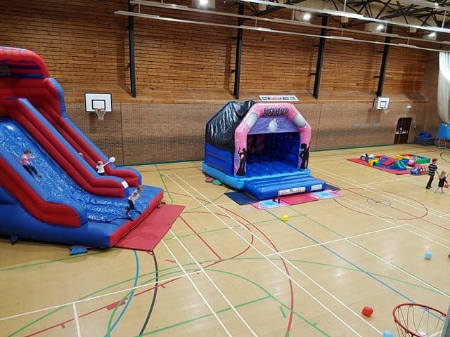 The sports hall is the largest room for hire and any of our equipment will fit in here including our 20ft Mega Slide and Party Time Assault Course. We have had lots of our equipment in this hall at once still leaving plenty of room for children to run around or ride around on our Didi Cars.