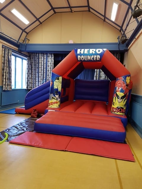 This beautiful hall is situated in the little village of Scorton, near Catterick. It is a perfect sized hall to hire for birthday parties, christenings, meetings and activity groups. The main hall is long but fairly narrow however, most of our inflatables will fit in here including our amazing Toxic Drop Mega Slide and Disco Dome Bouncy Castle!!! If you're looking for something smaller then have a look at our Childrens Bouncy Castles and Soft Play Packages for some fantastic ideas.