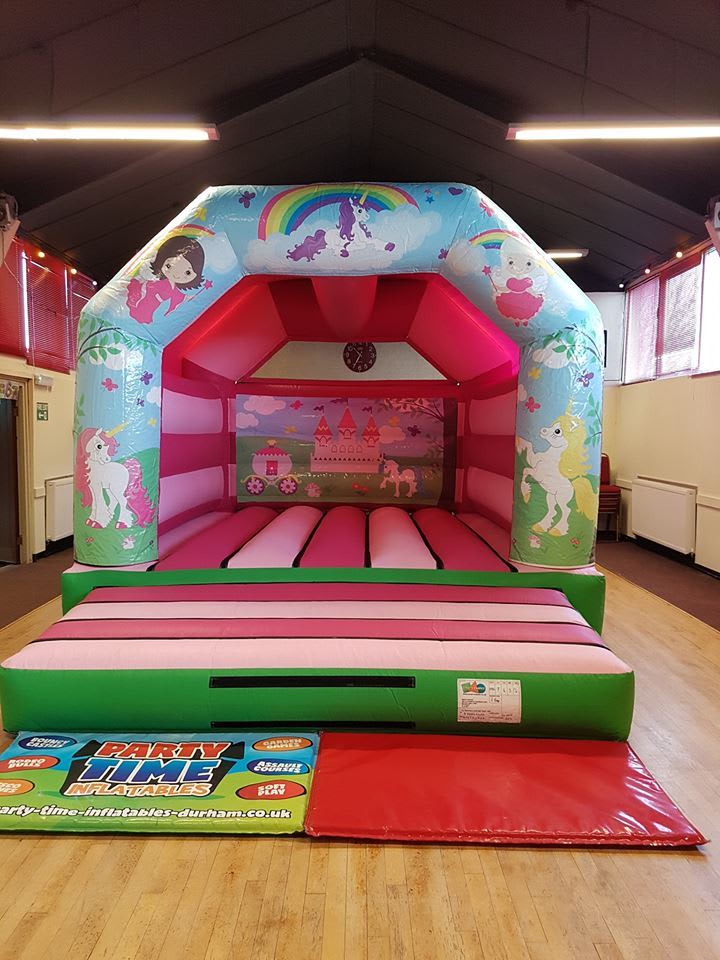 Here's a photo of our Deluxe Princess & Unicorn Bouncy Castle pictured in this hall. Any of our Childrens Bouncy Castles up to 11ft high and 16ft wide will fit in this venue. Other popular entertainment for children's parties include Soft Play, Giant Garden Games and Add Ons.