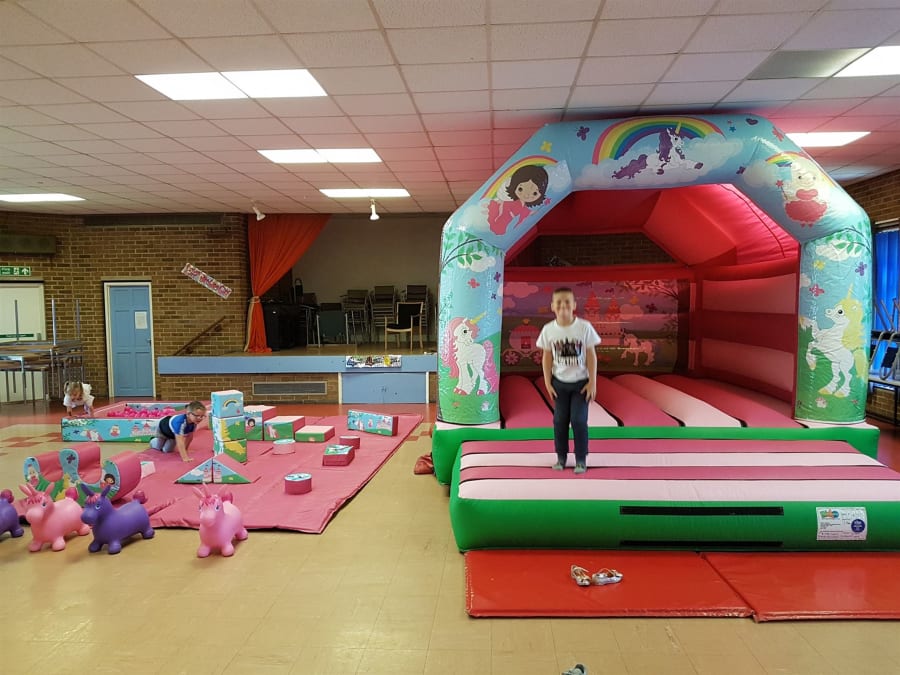 Any of our Childrens Bouncy Castles under 10.5ft high will fit in this hall, this includes our Toddler Bouncy Castles and Soft Play too.