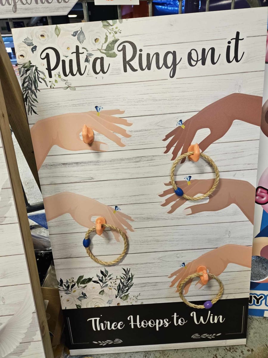 Engage your guests with our Put a Ring on it game. Participants will have to throw a ring over the finger to win. This game is a crowd-pleaser and will keep your guests entertained for hours.