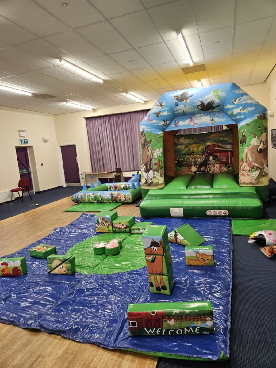 Here is our fantastic Farmyard Bouncy Castle, Ball Pool and Soft Play Party Package! Perfect entertainment for babies, toddlers and children at birthday parties, nursery fun days, toddler groups and christenings to name a few! The Farmyard theme package includes: