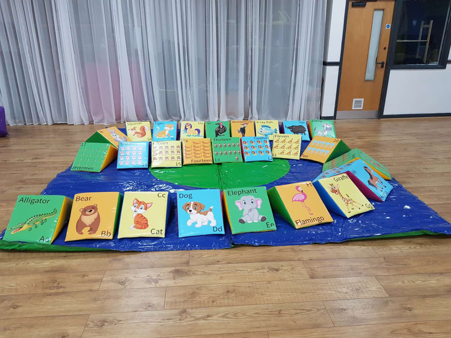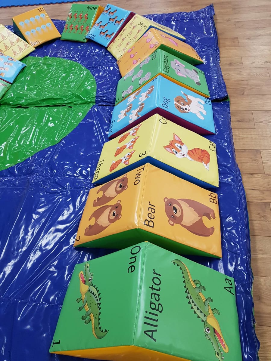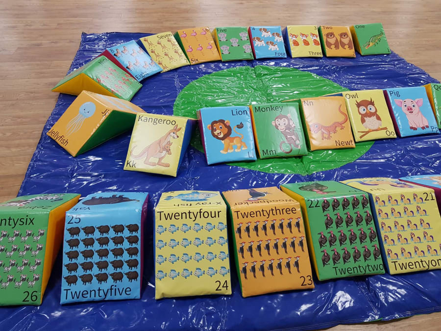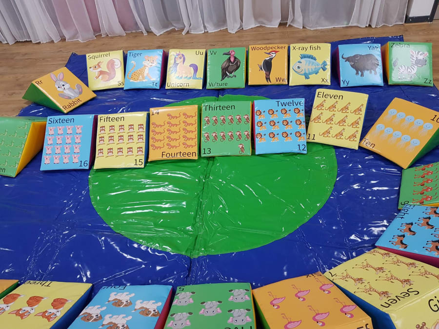 This package is very bright and colourful and each piece of soft play includes a capital and lower case letter of the alphabet along with animals beginning with that particular letter and numbers up to 26. E.g. Aa Alligator 1, Bb Bear 2, Cc Cat 3, Dd Dog 4 and so on.