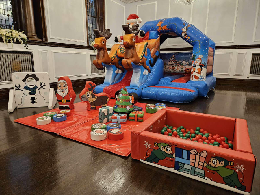 Bring the festive fun and cheer to your end of term school party, Christmas Fair or Christmas Light Switch On in County Durham, Darlington and surrounding areas with these fantastic Christmas themed bouncy castle with slide and soft play.