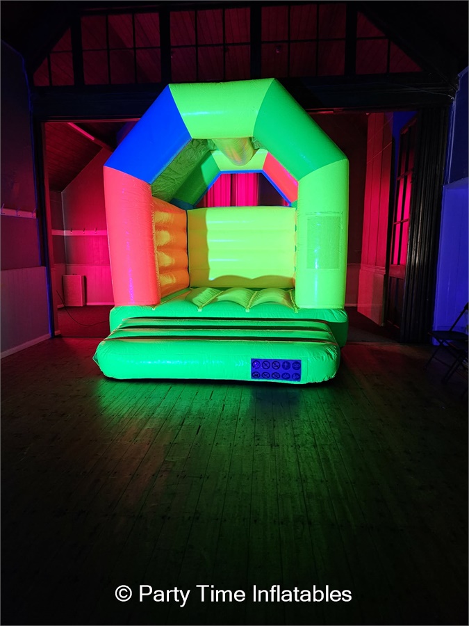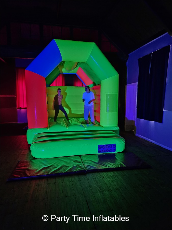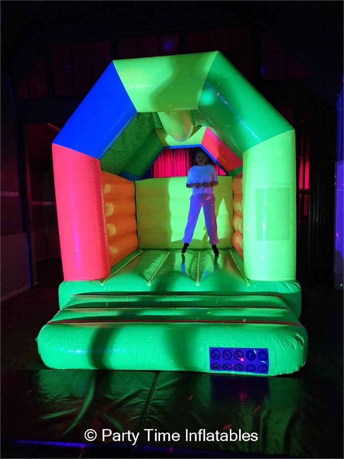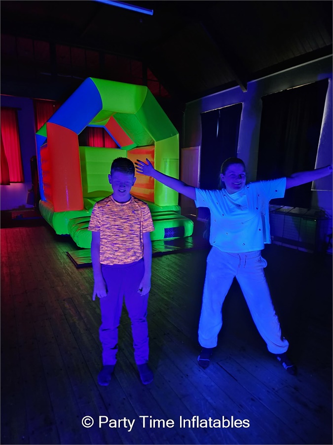 Turn your party into an unforgettable glow experience with our UV Disco Bouncy Castle Parties!