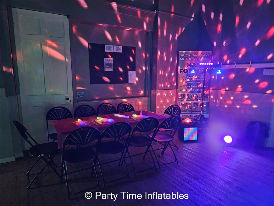 Our package includes a stunning UV-reactive bouncy castle that comes alive under the powerful UV lighting, creating an exciting neon glow effect that kids will love. We provide glow sticks to get everyone shining, along with disco lights to fill the room with colour and movement.