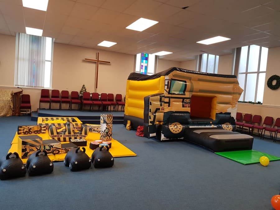 Here is our fantastic Construction themed bouncy castle and soft play package for hire throughout the North East.